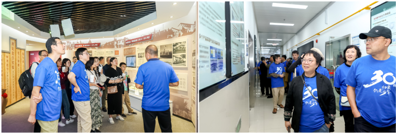 图片说明:校友参观校史馆(左)和生物反应器工程国家重点实验室(右)